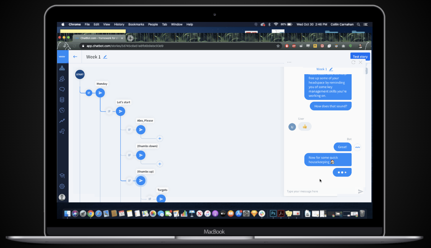 I started researching other chatbot builders where non-programmers would be able to write and edit the chatbot script easily. With the other designer, we decided that we should propose a new tool to the CEO called Chatbot, which didn’t require coding knowledge to write the chatbot script. I built a case for using the chatbot builder by showing the CEO prototypes from the Chatbot builder vs DialogFlow and explaining the technical challenges to DialogFlow. The CEO was bought in to the Chatbot builder and we moved forward with that tool.